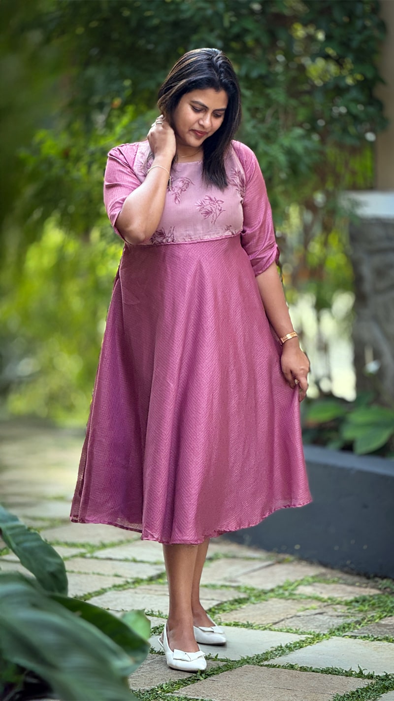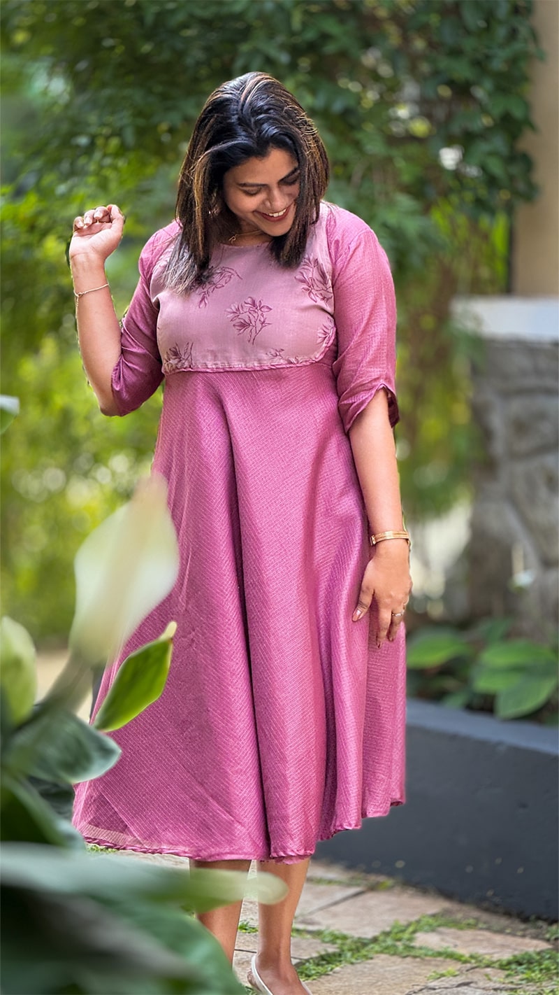 The Onion Pink Floral Kota Organza Fairy Dress is a soft blend of romance and elegance. Made from breathable Kota organza, it offers a feather-light feel with a beautiful flow. The gentle pink shade paired with floral detailing adds a fresh, feminine charm. Its relaxed silhouette ensures comfort while keeping the look graceful and flattering. Perfect for daytime celebrations, brunches, and casual festive outings.